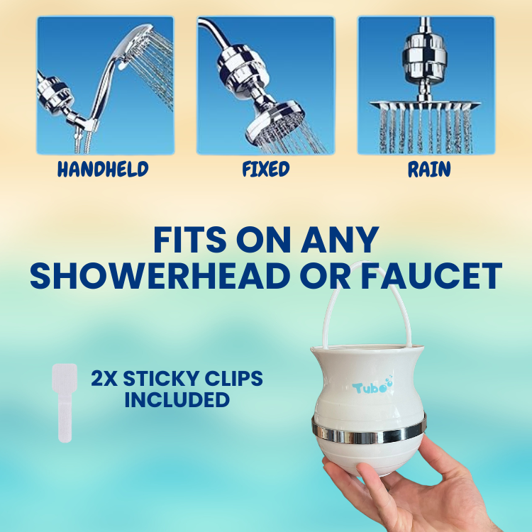 Tubo’s innovative filtration system removes up to 99% of harsh contaminants like chlorine, heavy metals, and bacteria.